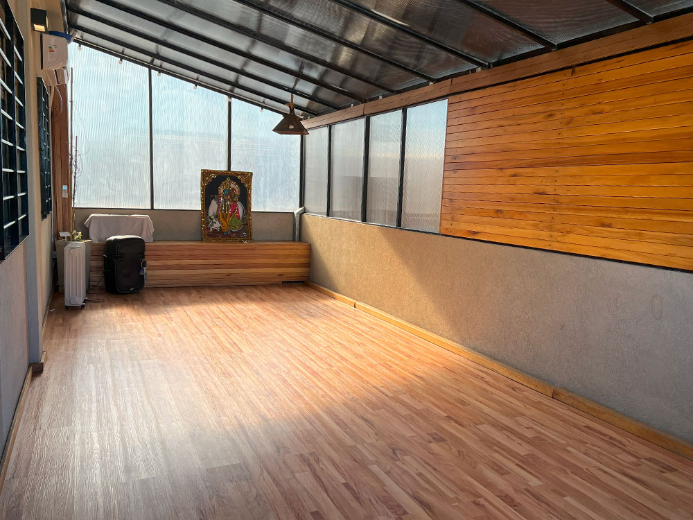 Ideal para actividades con grupos grandes, como talleres y eventos (capacidad máxima de 25 personas) o clases de yoga (capacidad máxima de 8 personas).